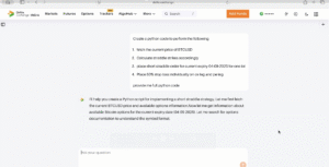 Type in your requests or queries about algorithmic trading tasks. It could be anything from “place ETH option orders ” to “debug my WebSocket connection”.